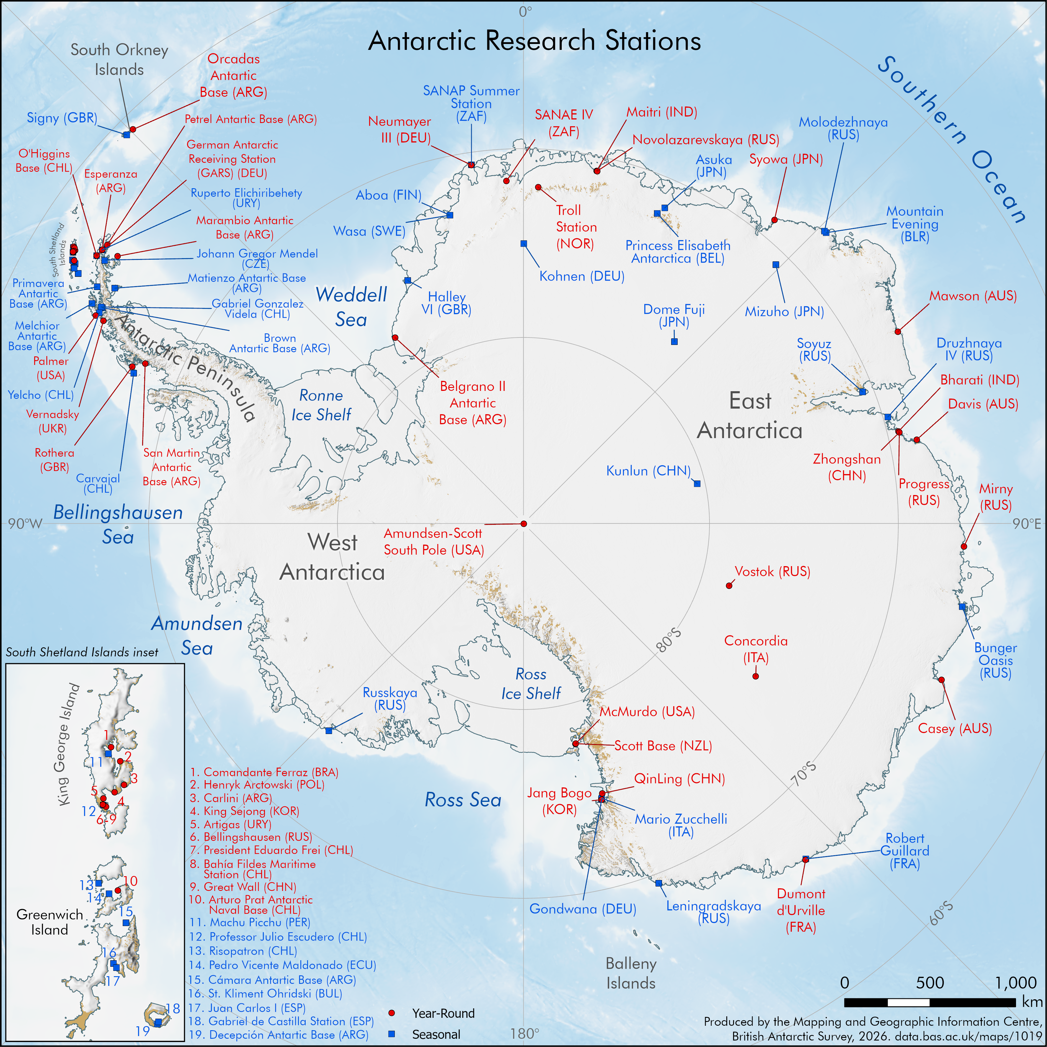 Produced by the Mapping and Geographic Information Centre, British Antarctic Survey, 2026, version 1, https://data.bas.ac.uk/maps/1019.